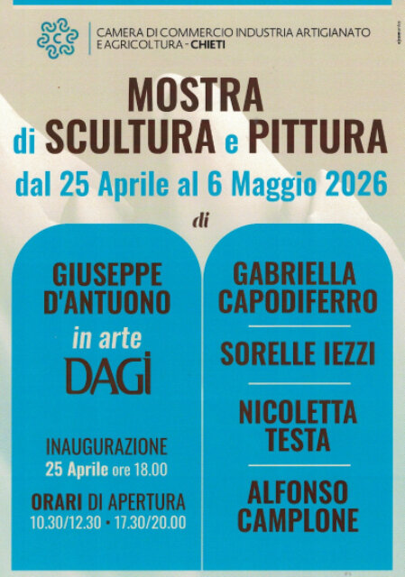 (da Chieti Today: https://www.chietitoday.it/eventi/mostre/scultura-pittura-chieti-25-aprile-6-maggio-2026.html)