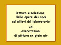 Qui invece una brevissima e parziale rassegna degli incontri periodici dei soci avvenuti in vari anni per una lettura critica e corale delle loro opere o durante una delle tante delle sessioni di pittura en plein air (cliccare sulle miniature per accedere alle immagini a pieno schermo)
